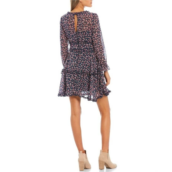 - tiered skirtΒ with ruffle detail on seamsΒ