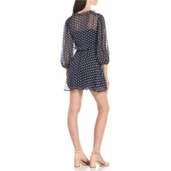 Hot Sale ๐ B. Darlin Short-Sleeve Flocked-Dot Ruffled Shift ๐ Dress Navy/black ๐ฅ