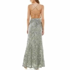 Cheapest โค๏ธ B. Darlin Square Neck Sequin Pattern Cross Back Long ๐ Dress Sage/silver ๐