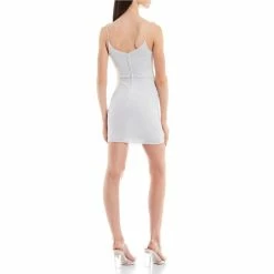 Coupon ๐ B. Darlin Spaghetti-Strap V-Neck Glittered Faux-Wrap Knit ๐ Dress White/silver ๐