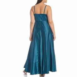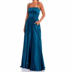 Coupon โญ B. Darlin Emma Sleeveless Ruched Square Neck Side Slit Satin Ball Gown Dark Teal ๐ฅ