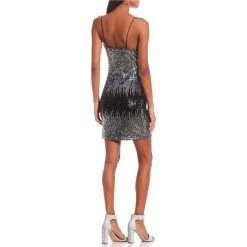 New ✔️ B. Darlin Scoop Neck Bungee Strap Pull-On Heartbeat Sequin 👗 Dress Black/silver/lilac 🎉