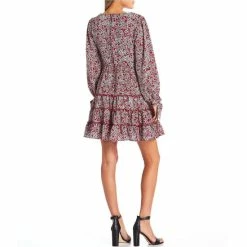 Best Pirce ๐ฅฐ B. Darlin Long Sleeve V-Neck Tiered Ditsy Print ๐ Dress Red/off-white/black ๐ฅ